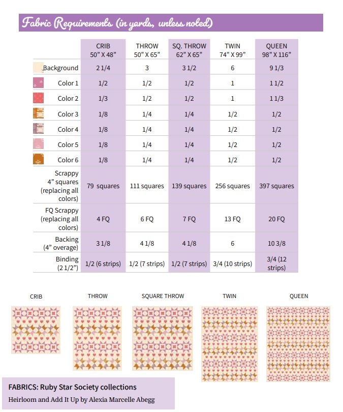 Sizes: Crib, Throw, Square Throw, Twin, and Queen